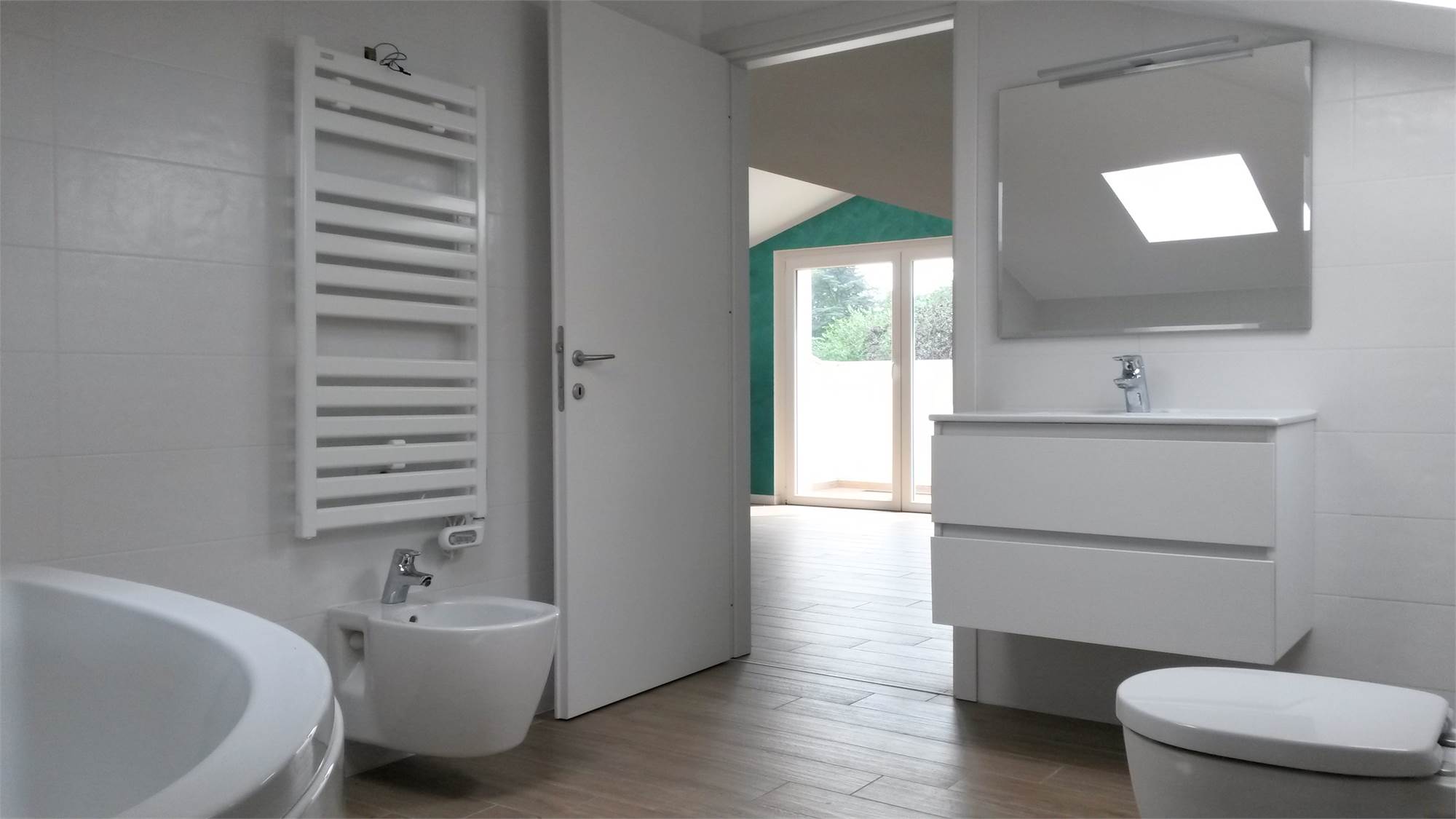 In zona molto tranquilla, comodissimo per la Scuola Europea, recente appartamento sviluppato su 2 piani, per la gestione spazi si può vedere la planimetria. In piccola palazzina, ultimo piano con ascensore, terrazzo, soggiorno con cucina a vista ARREDATA , 2 camere e bagno con doccia ARREDATO, al piano superiore mansardato ampio locale jolly, cameretta e bagno. Cucina e bagni arredati. Box doppio.